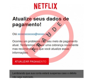 O usuário recebe uma mensagem informando que para continuar utilizando os serviços Netflix será necessário atualizar algumas informações sobre pagamento disponível no link, entretanto a página é falsa criada para roubar os dados do e-mail e bancários da vítima.