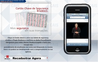 Falso comunicado do banco Bradesco informando que o Cartão Chave de Segurança Bradesco foi expirado. A fraude fornece um link para a regularização que leva a um site falso destinado a roubar os dados da vítima.