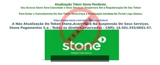 A vítima recebe uma mensagem informando que precisa atualiza seu token das maquininhas de crédito Stone sendo necessário realizar a atualização no link disponível, entretanto a página é falsa criada para roubar os dados cadastrais do usuário.