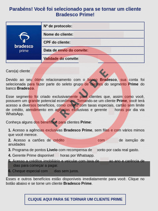 Parabéns! Você foi selecionado para se tornar um cliente Bradesco Prime!