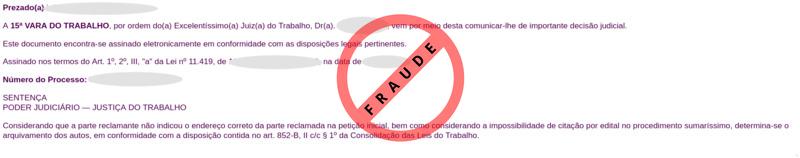FRAUDE - Intimação eletrônica da Justiça do Trabalho