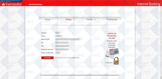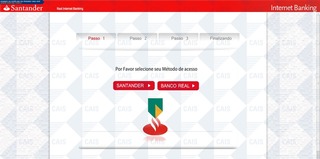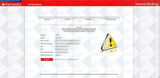 A fraude usa o nome dos bancos Real e Santander para pedir que a vítima realize a atualização de seus dados cadastrais. O link para a suposta atualização leva a uma página falsa destinada a roubar dados da conta bancária da vítima.