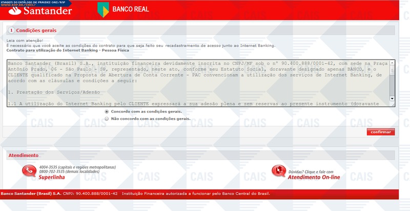 ############################################################################### # !!! ATENCAO !!! ATENCAO !!! ATENCAO !!! ATENCAO !!! ATENCAO !!! ATENCAO !!! # # # # O TEXTO ABAIXO FOI TRANSCRITO A PARTIR DE UMA FRAUDE CADASTRADA EM NOSSOS # # SISTEMAS ATRAVES DA COLETA DE DADOS NA INTERNET E/OU CONTRIBUICAO DE # # PARCEIROS E/OU USUARIOS. # # # # EM CASO DE DUVIDAS ENTRE EM CONTATO ATRAVES DO EMAIL: cais@cais.rnp.br # # # # OBRIGADO. # # # # CENTRO DE ATENDIMENTO A INCIDENTES DE SEGURANCA (CAIS) # # REDE NACIONAL DE ENSINO E PESQUISA (RNP) # ############################################################################### Prezado(a) Cliente: artefatos@cais.rnp.br O motivo pelo qual estamos entrando em contato é para alertar que seus dados, estão pendentes em nossos sistemas, sendo necessário a atualização de seus dados para a liberação de seu acesso. Caso não efetue sua atualização com urgência, seu acesso (internet banking e caixas eletrônicos) será SUSPENSO. Clique em confirmar e siga todos os procedimentos exigidos pelo Internet Banking para que seus dados sejam atualizados com rapidez e facilidade. Atenção: Caso a regularização não seja efetuada, seu acesso via Internet Banking e Caixas Eletrônicos serão suspensos. Impossibilitando acessos e movimentações.