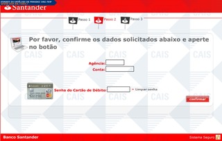A mensagem, supostamente enviada pelo banco Santander, contém apenas um link que leva a uma página falsa que tem o objetivo de coletar dados da conta bancária da vítima.