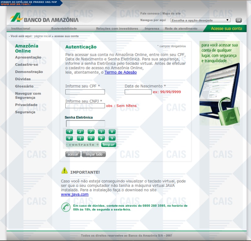 Assunto da mensagem: Aviso de Segurança Banco da Amazônia.