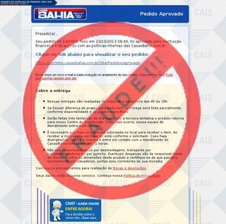 A vítima recebe um email com uma suposta aprovação de compra em uma loja de móveis. O link para o comprovante do pedido é na verdade o endereço para o download de um malware.