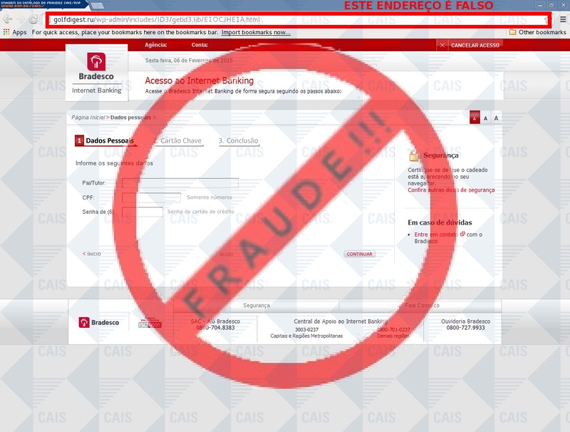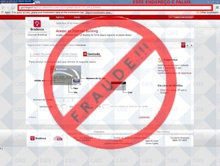 ############################################################################### # !!! ATENCAO !!! ATENCAO !!! ATENCAO !!! ATENCAO !!! ATENCAO !!! ATENCAO !!! # # # # O TEXTO ABAIXO FOI TRANSCRITO A PARTIR DE UMA FRAUDE CADASTRADA EM NOSSOS # # SISTEMAS ATRAVES DA COLETA DE DADOS NA INTERNET E/OU CONTRIBUICAO DE # # PARCEIROS E/OU USUARIOS. # # # # EM CASO DE DUVIDAS ENTRE EM CONTATO ATRAVES DO EMAIL: cais@cais.rnp.br # # # # OBRIGADO. # # # # CENTRO DE ATENDIMENTO A INCIDENTES DE SEGURANCA (CAIS) # # REDE NACIONAL DE ENSINO E PESQUISA (RNP) # ############################################################################### Rede de Atendimento Banco Bradesco S.A Prezado(a) Cliente. Informamos que o período de uso do seu Cartão Chaves de Segurança está vencendo, para continuar usando o mesmo nos canais de atendimento, tais como Caixas Eletrônicos, Telefone e Internet Banking será necessário realizar a atualização. Esta atualização é obrigatória para todos os clientes Pessoa Física e Pessoa Jurídica, que utilizam o Cartão Chaves de Segurança. A atualização periódica é indispensável para evitar fraudes, garantindo sua segurança e comodidade nos canais de atendimento Bradesco. Caso o nosso Banco de Dados não reconheça a validação do seu Cartão Chaves de Segurança, seu acesso a consultas e movimentações nos Caixas Eletrônicos, Internet Banking e Telefone serão bloqueados por medidas preventivas, e o desbloqueio só poderá ser realizado em sua agência, sendo cobrada uma taxa de R$ 89,90 reais, relacionado ao envio de um novo Cartão de Chaves Para iniciar a correção clique aqui Para nós, é uma satisfação ter você como cliente. Atenciosamente, Banco Bradesco S.A.