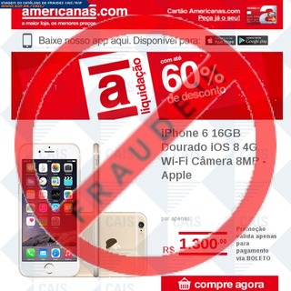 ############################################################################### # !!! ATENCAO !!! ATENCAO !!! ATENCAO !!! ATENCAO !!! ATENCAO !!! ATENCAO !!! # # # # O TEXTO ABAIXO FOI TRANSCRITO A PARTIR DE UMA FRAUDE CADASTRADA EM NOSSOS # # SISTEMAS ATRAVES DA COLETA DE DADOS NA INTERNET E/OU CONTRIBUICAO DE # # PARCEIROS E/OU USUARIOS. # # # # EM CASO DE DUVIDAS ENTRE EM CONTATO ATRAVES DO EMAIL: cais@cais.rnp.br # # # # OBRIGADO. # # # # CENTRO DE ATENDIMENTO A INCIDENTES DE SEGURANCA (CAIS) # # REDE NACIONAL DE ENSINO E PESQUISA (RNP) # ############################################################################### header_logo topo_cartao banner_app banner_evento iPhone 6 16GB Dourado iOS 8 4G Wi-Fi Câmera 8MP - Apple por apenas: R$ 1.300,00 Promoção válida apenas para pagamento via BOLETO compre agora Smart TV LED 48" Samsung UN48JU6500GXZD Ultra HD 4K por apenas: R$ 1.300,00 Promoção válida apenas para pagamento via BOLETO compre agora Console PlayStation 4 500GB + Controle Dualshock 4 + 2 Jogos por apenas: R$ 1.300,00 Promoção válida apenas para pagamento via BOLETO compre agora Americanas.com B2W Digital - Inscrita no CNPJ sob o nº 00776574/0001-56 Com sede na Rua Sacadura Cabral, 102, Rio de Janeiro/RJ, CEP 20081-902 Atendimento: 4003-4848 - De Segunda a Sábado das 8:00 às 20:00 (exceto feriados) Não deseja mais receber nossos e-mails? Solicite o descadastramento. Oferta válida até 10/02/2016, enquanto durarem nossos estoques, para compras realizadas somente através deste e-mail ou pelo Televendas. Neste caso, mencione o código de ação: em_ng_bl_00_310116_sem_bd. Todas as regras e promoções são válidas apenas para produtos vendidos e entregues pelo Americanas.com. 7c6352c914887ee2a3ad02ca7081caed